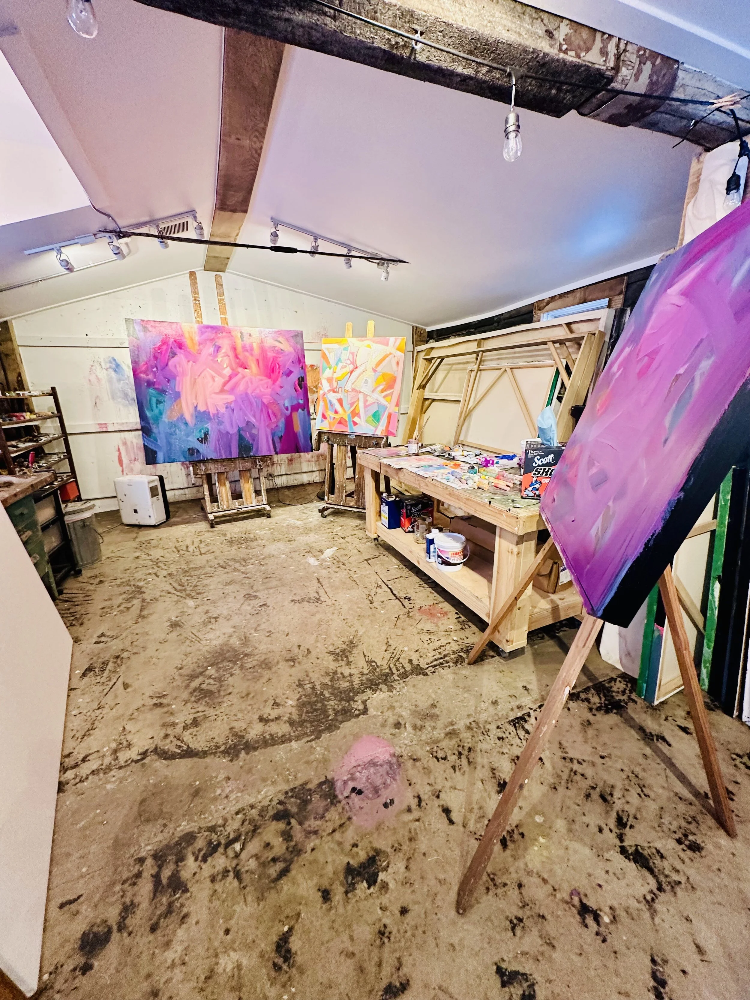 In the mid 1990s, Ruth expanded her artistic range to include abstract expressionism. Her professional accomplishments feature numerous solo and group exhibitions, as well as a continuous presence at The Dixboro Project. For over a decade, Ruth has dedicated herself to teaching, notably with the group, she originated, "Jumping Water Painters.”